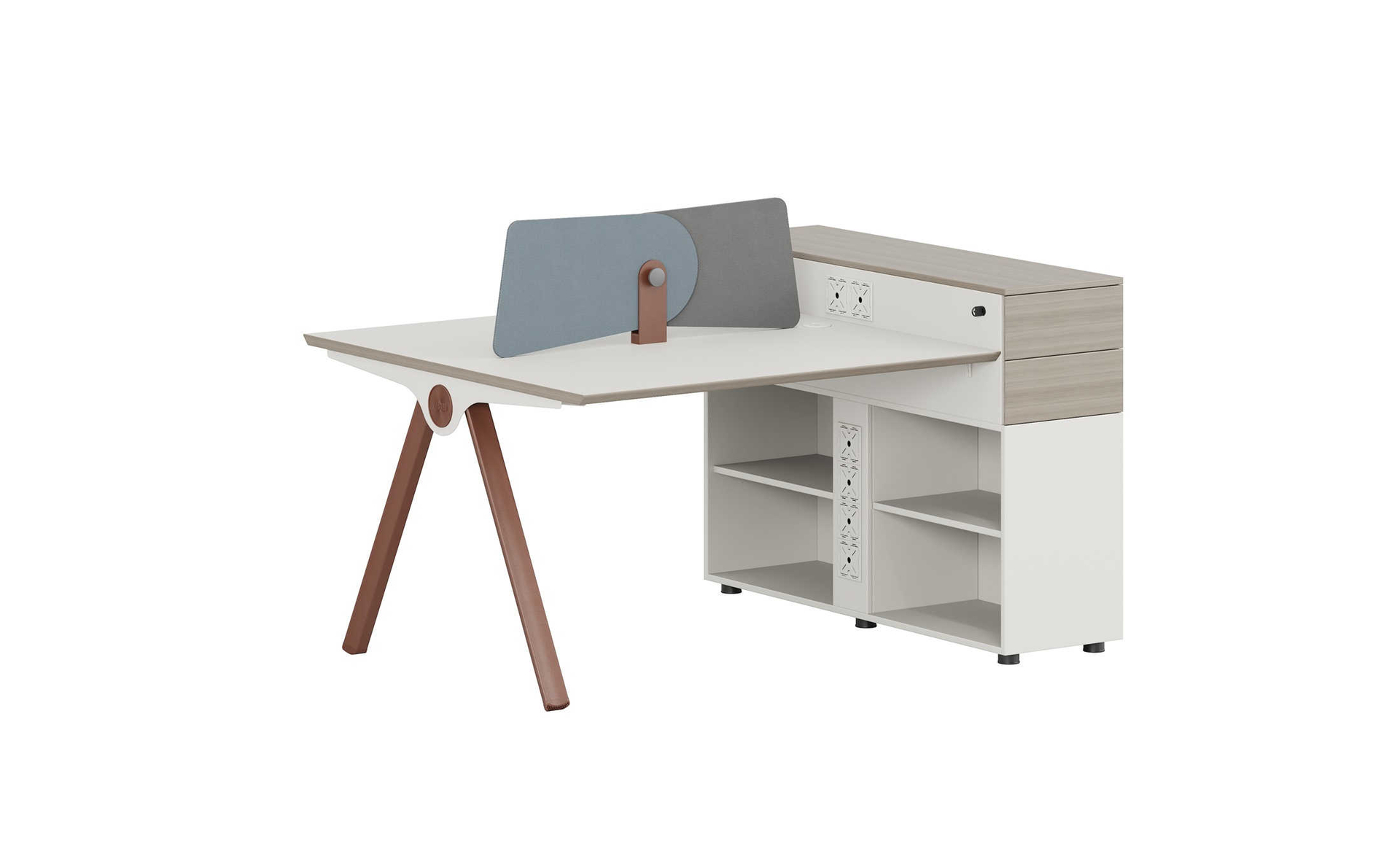 优格又名“有格”,代表了有品格、有格调。产品整体以“青春、时尚、动感”为设计主题,采用了大量的弧形与直线条交叉设计,将产品魅力展示的淋漓尽致。在一贯沉稳的深色办公配色中,大胆运用了白色、卡其棕色与浅色木纹的撞色搭配,打破产品配色原有的严肃氛围,赋予了产品生命力以及活力。独特的台脚与桌屏设计,动感十足,无不展示产品的细节之美。产品设计时尚,配置齐全,适合各种规模的办公场所。